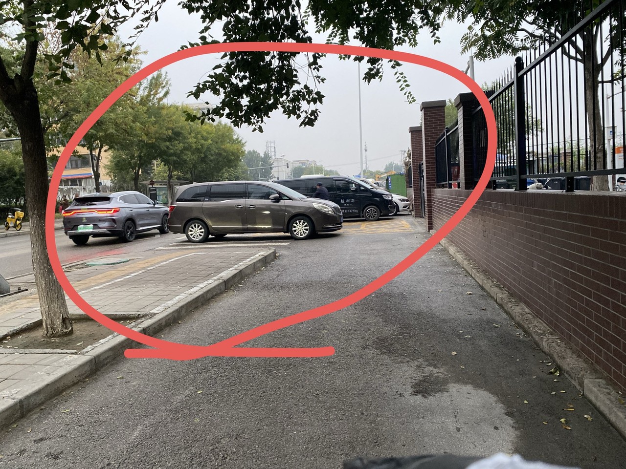紫金新干线一区新门口正对门以及西门口的右侧经常停着几辆机动车,导致辅路上由南向北出行的车辆以及行人都必须绕路,然后集中到门口产生拥挤打架,今儿放学就差点儿撞到孩子。这个事儿其实小区业主也找过好多次社区来疏解这个乱停车,真的是无用,屡禁不止,我们也总不能天天来找社区来疏解吧? 以上问题请求有关市政路部门: 1,紫金一区西门口区域现归属市政路,如果可以停车,麻烦咱们设置监控收费贴条。 2,如果此处市政认为无停车规划,麻烦与小区西门的马路对面看齐,安排种植树木绿化,这样就避免了乱停车。 3,如果以上都不能,麻烦在此处设置围栏以及停车提示牌,还小区人民一个清爽点的西门口。