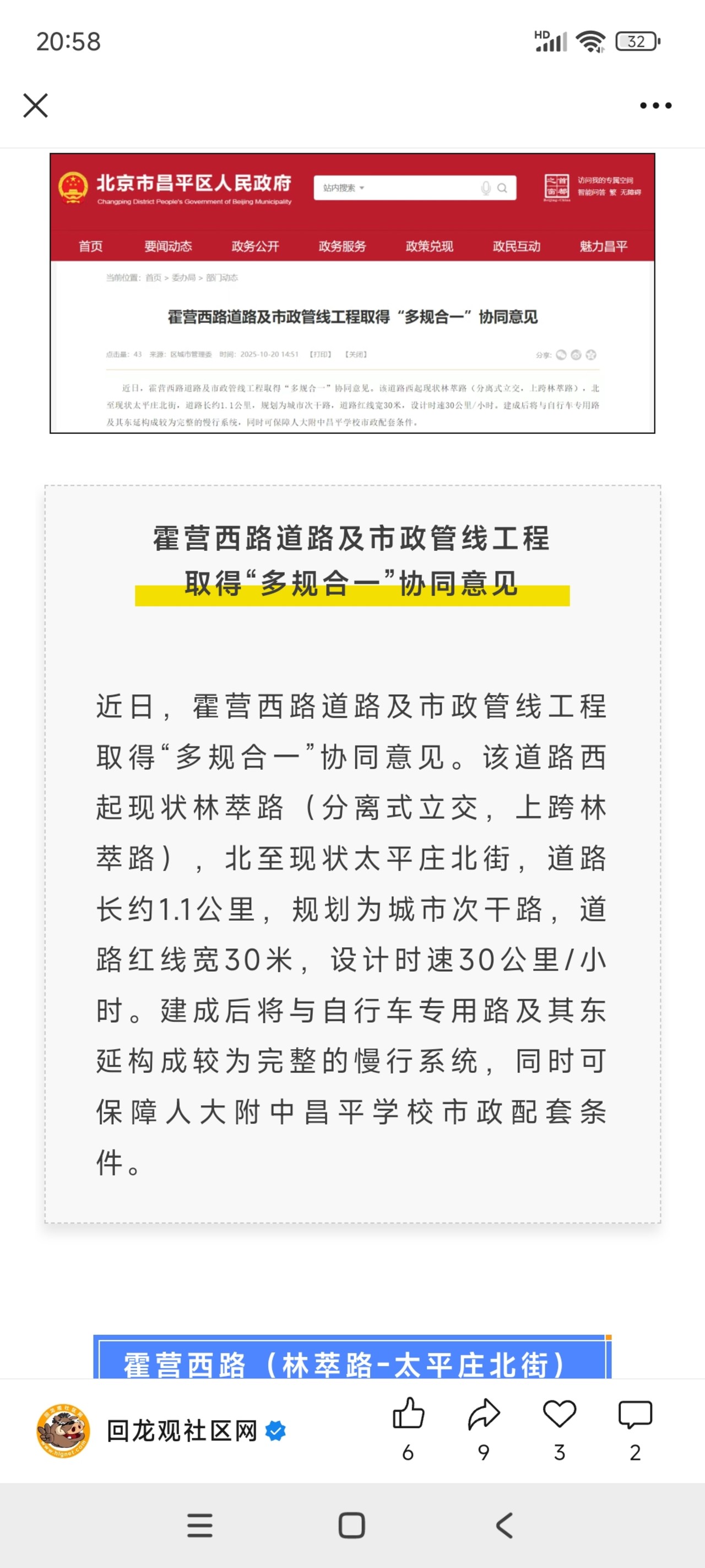 近日霍营西路,林萃路至太平庄北街段取得多规合一协同意见,请问有没有具体动工时间?另外是否要拆除占用华龙苑南里小区内南侧部分土地?有无拆除时间?谢谢!